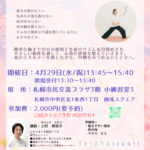 2026年3月27日 / 最終更新日時 : 2026年3月27日 sapporo_admin アリランARIRANG気功ワークショップ 簡単な動きで自分自身と向き合い、自分を感じていきます。 本来備わっている生命のリズムを目覚めさせ、 呼吸・意識・やさしい誘導を通して、心身の状態を整えていきます。 ・疲れが抜けにくい ・気持ちが落ち着かない ・頭が休まら […]